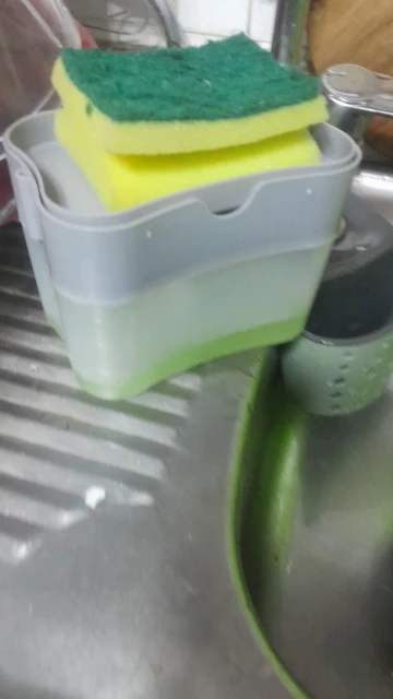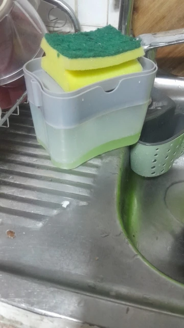 No more stopping to grab the soap bottle. Any other sponge or scrubber will work with it too!